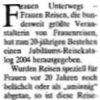 Frauen Unterwegs - Frauen Reisen ... hat zum 20-jährigen Bestehen einen Jubiläumskatalog 2004 herausgegeben. Wurden reisen speziell für Frauen vor 20 Jahren noch belächelt oder für "unsinnig" abgetan, so ist die Reiseform für viele Frauen mittlerweile zu einer durchaus sinnvollen Alternative geworden.
